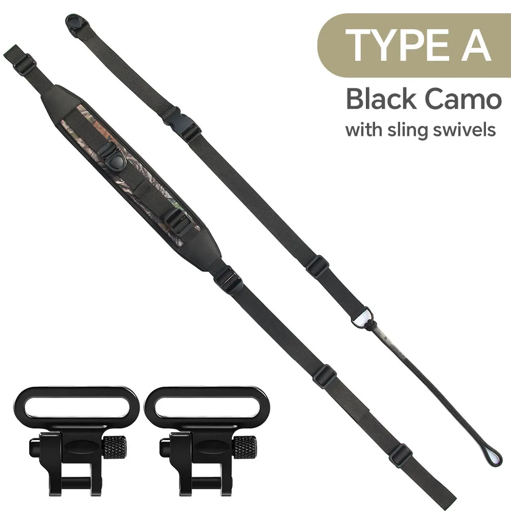 Black Camo Neoprene Padded Crossbody Rifle Sling – Adjustable Quick‑Release Hunting Shoulder Strap with Swivels