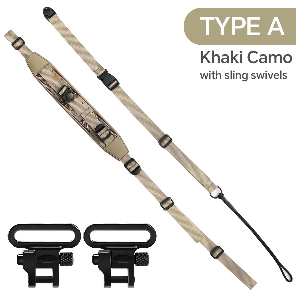 Khaki Camo Neoprene Padded Crossbody Rifle Sling – Adjustable Quick‑Release Hunting Shoulder Strap with Swivels
