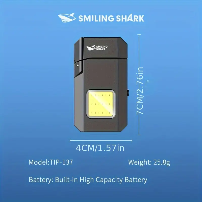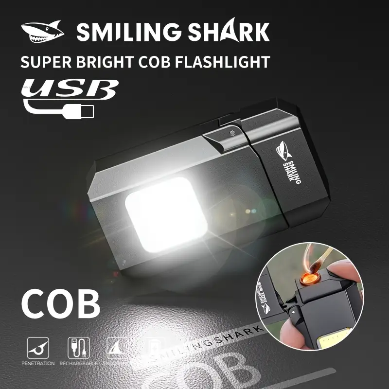 Smiling Shark COB Keychain Flashlight & USB‑Rechargeable Electronic Lighter – Windproof, Multi‑Mode LED Torch with Carabiner Clip