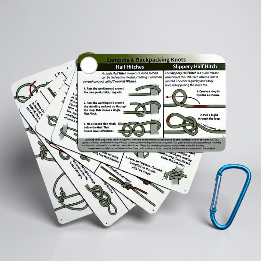 Waterproof PVC Knot Guide with Mini Carabiner – 22 Essential Knots for Camping, Backpacking & Survival
